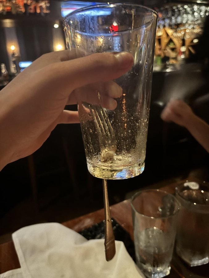 #8 Čašník hodil vidličku do pohára a tá si prebila cestu dnom