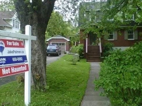 #4 Značka pri dome s nápisom Nestraší (Not Haunted)