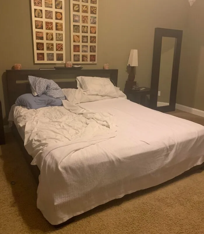 #4 Poriadna úroveň malichernosti … Môj manžel sa dnes ráno nahneval a tak sa rozhodol, že ustelie len svoju polovicu postele.