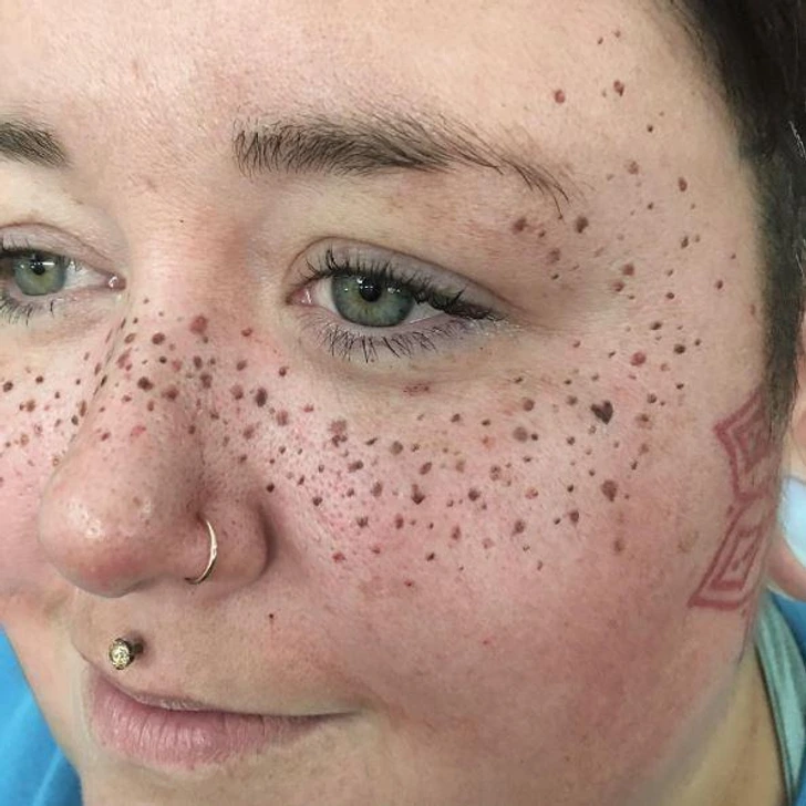 #1 Vytetované pehy pripomínajúce zablatenú tvár