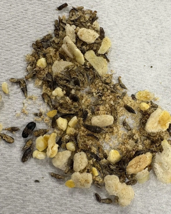 „Zjedol som takmer celé vrecko čipsov a zrazu som na dne našiel toto. Chrobáky!“