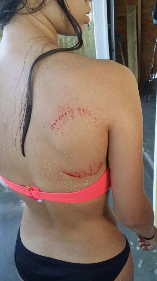 Aj takýto suvenír si niekto odnesie z pláže. Žralok si zrejme uvedomil, že človek nechutí ako tuniak a radšej sa stiahol. Ešte predtým ale zanechal jazvu a príbeh na celý život.