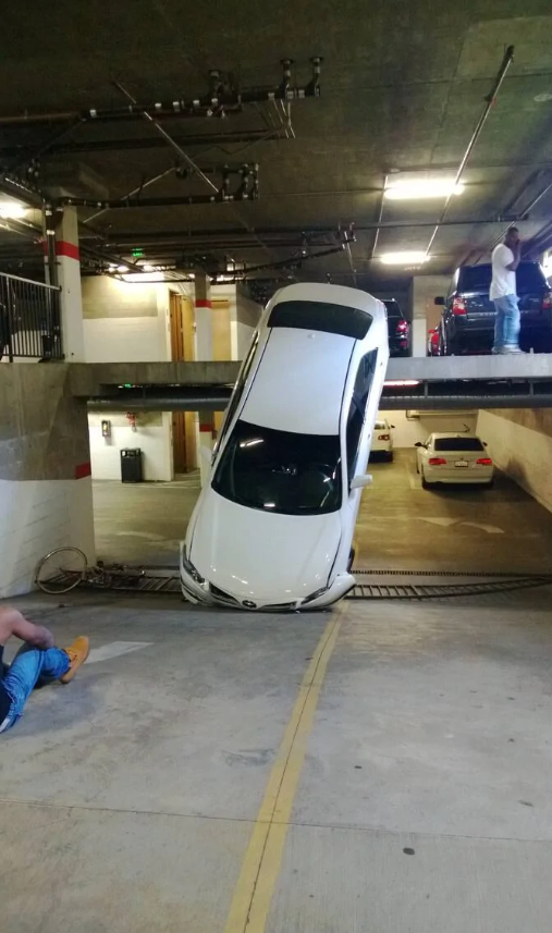 Meškal som do práce, Ak by som vyrazil len o dve sekundy skôr, tak toto auto mi spadne na hlavu.
