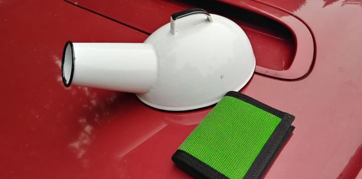 Rozbíjač skla pre prípad núdze. Malý kovový hrot rozbije okno, ak ste uväznení.