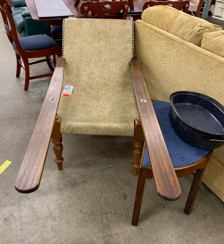 Vyzerá to ako plantážna stolička. Po celodennom sedení na koni by ste si dali svoje boľavé opuchnuté nohy na opierky. To je dôvod, prečo je chrbát tiež tak naklonený.