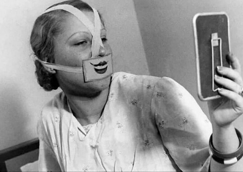 #10 Špeciálna maska na boj s depresiou (1937), ktorá sa očividne neujala, keďže na vyliečenie tohto problému sa nestačí len usmievať