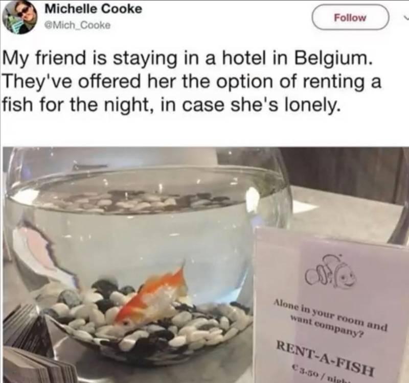 #9 V Belgickom hoteli si môžete prenajať rybku, aby vám nebolo smutno