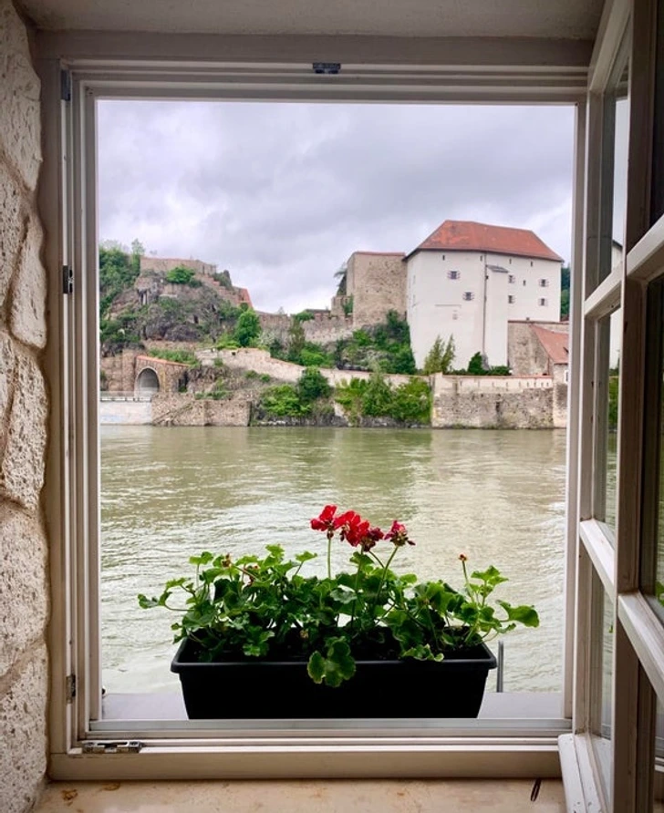 #3 Výhľad na rieku Dunaj a hrad zo 14. storočia z mojej hotelovej izby