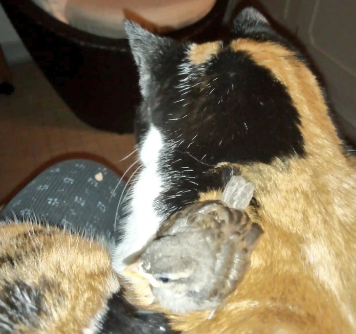 #11 Malý vrabec sa nejakým spôsobom dostal do domu mojej starej mamy, ktorá sa o neho začala starať. Pridala sa aj jej mačka.