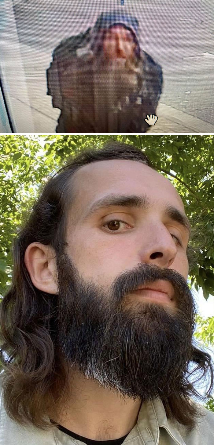 #10 Na prvej fotke je hľadaný zločinec a na druhej som ja. To je dôvod, prečo ma minulú noc pri ceste domov obklopilo 6 policajtov