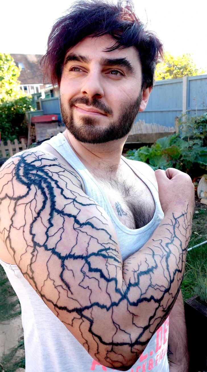 #14 Pred mesiacom som sa druhýkrát narodil po tom, čo som prežil zásah blesku. Na pamiatku som si dal takéto tetovanie.