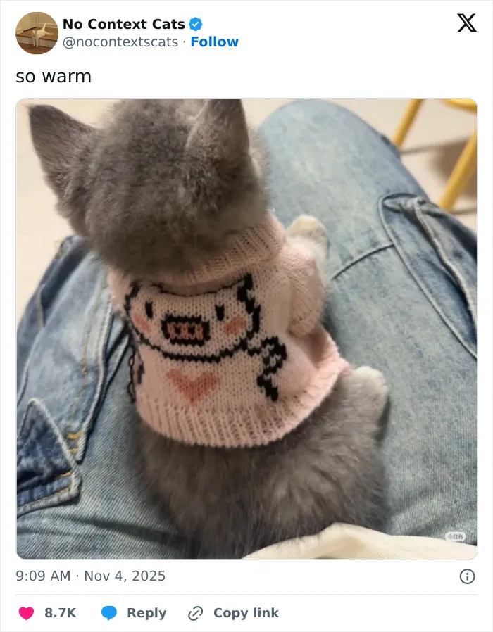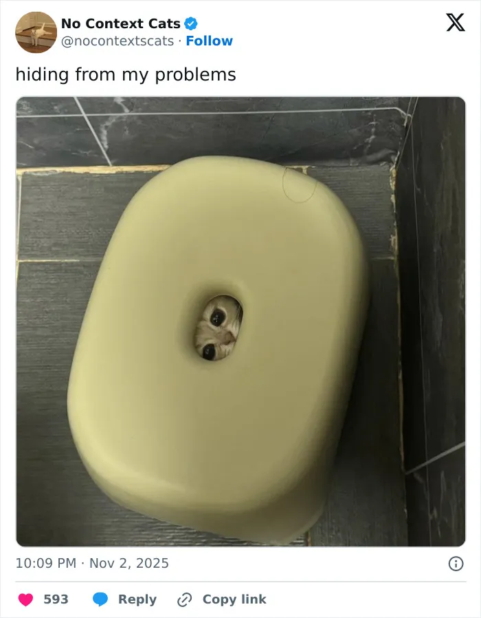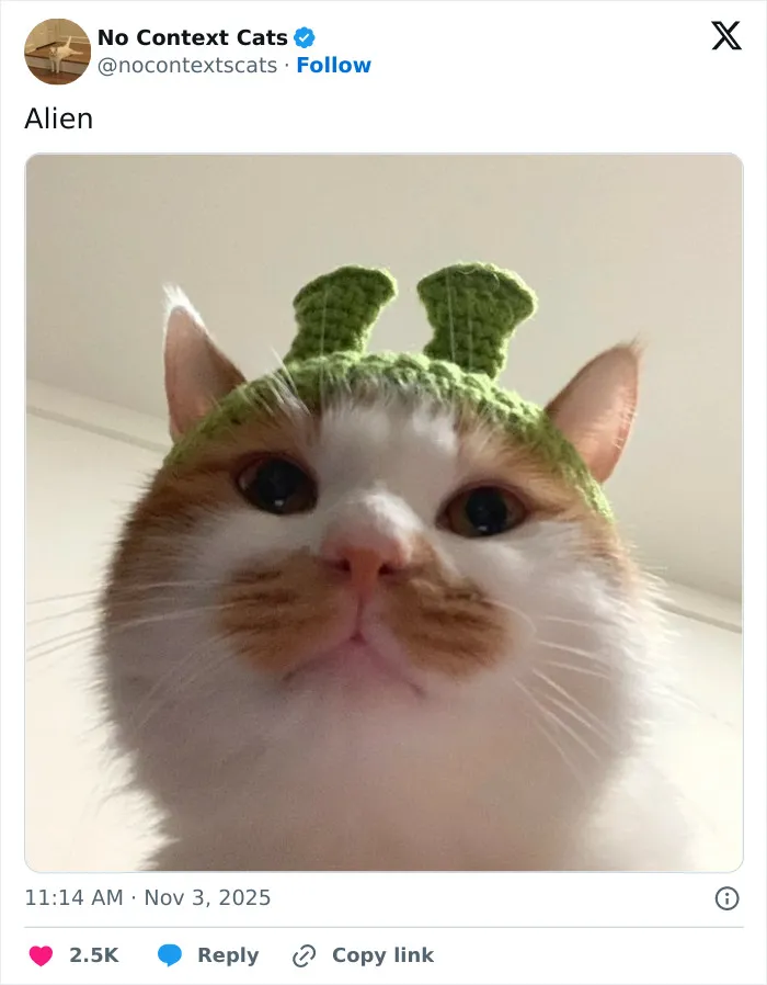 Na účte s názvom No Context Cats, ktorý je na sociálnej sieti X, nájdeme fotky mačiek, ktoré boli odfotené v zábavných situáciách a nižšie si môžete pozrieť ďalších 14 príspevkov z tohto účtu. Predchádzajúcu časť nájdete na tomto linku.