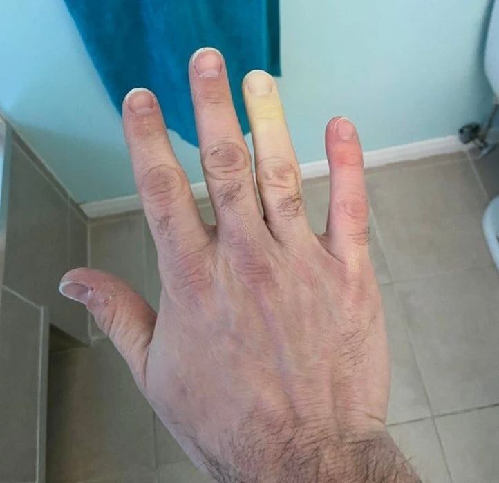 #8 Keď je vonku chladno, prstenník na mojej pravej ruke je bezfarebný a znecitlivený