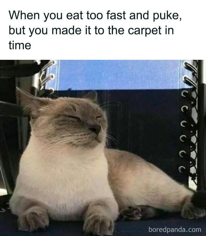 #1 Keď si príliš rýchlo jedol, potom si zvracal, no tentokrát si to stihol dať na koberec