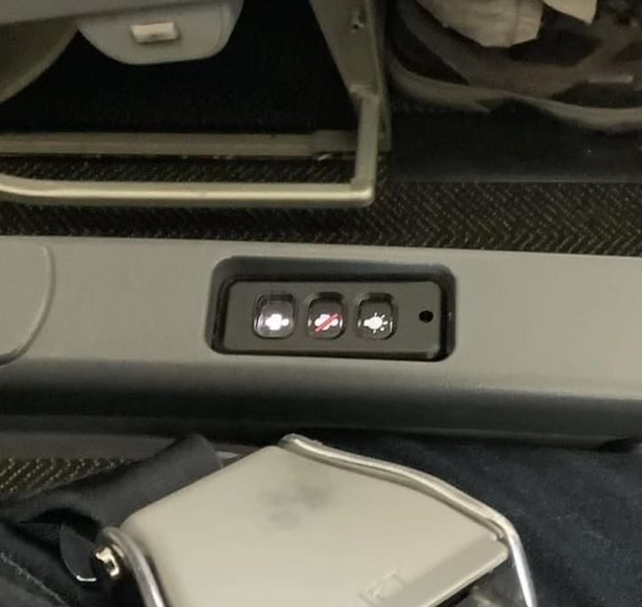 #14 Na opierke môjho sedadla sú tlačidlá na privolanie letušky. Len za prvých 30 minút letu mi dvakrát oznámili, aby som ich nestláčal