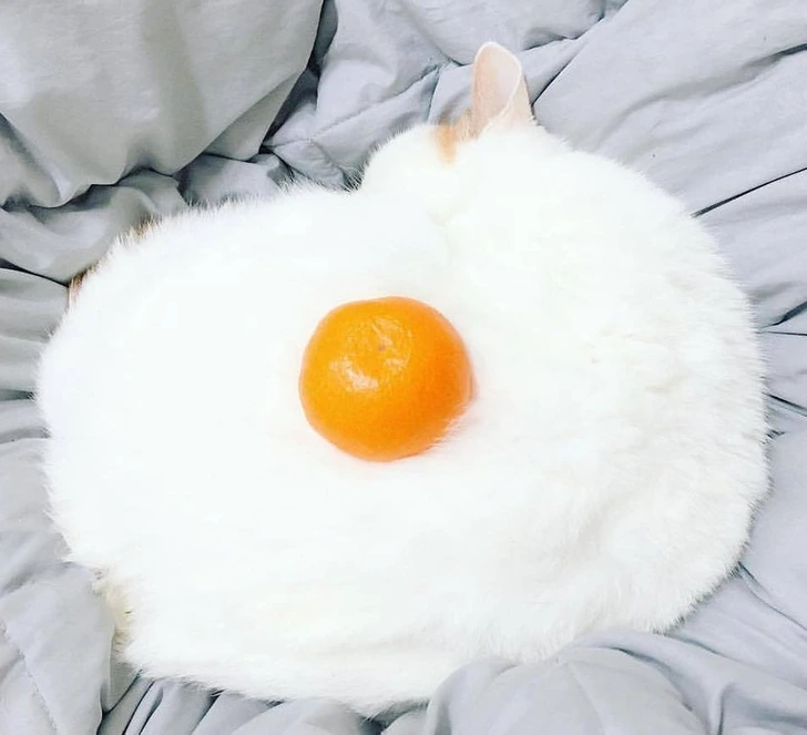 #4 Pomaranč na ležiacej mačke spôsobuje, že spolu vyzerajú ako vajce