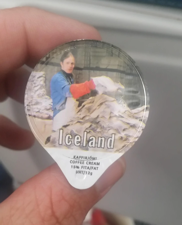 #18 Obrázok na mojom mlieku do kávy je žena v bitúnku