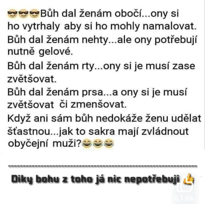 Internet nikdy nezaháľa a vy ste nám to opäť dokázali! Vaša kreativita, vtip a trefné postrehy zo života napĺňajú túto novú dávku humoru, ktorú sme pre vás pripravili. Čakajú vás memečka, ktoré vystihnú presne to, čo cítite, komentáre, ktoré vás rozosmejú nahlas, a situácie, v ktorých sa možno až nepríjemne spoznáte. Pripravte si bránice – prichádza ďalšia várka toho najlepšieho z internetu. A ak aj vy máte niečo, čo pobaví ostatných, pokojne sa o to podeľte v skupine!