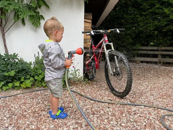#2 Umýva si bicykel
