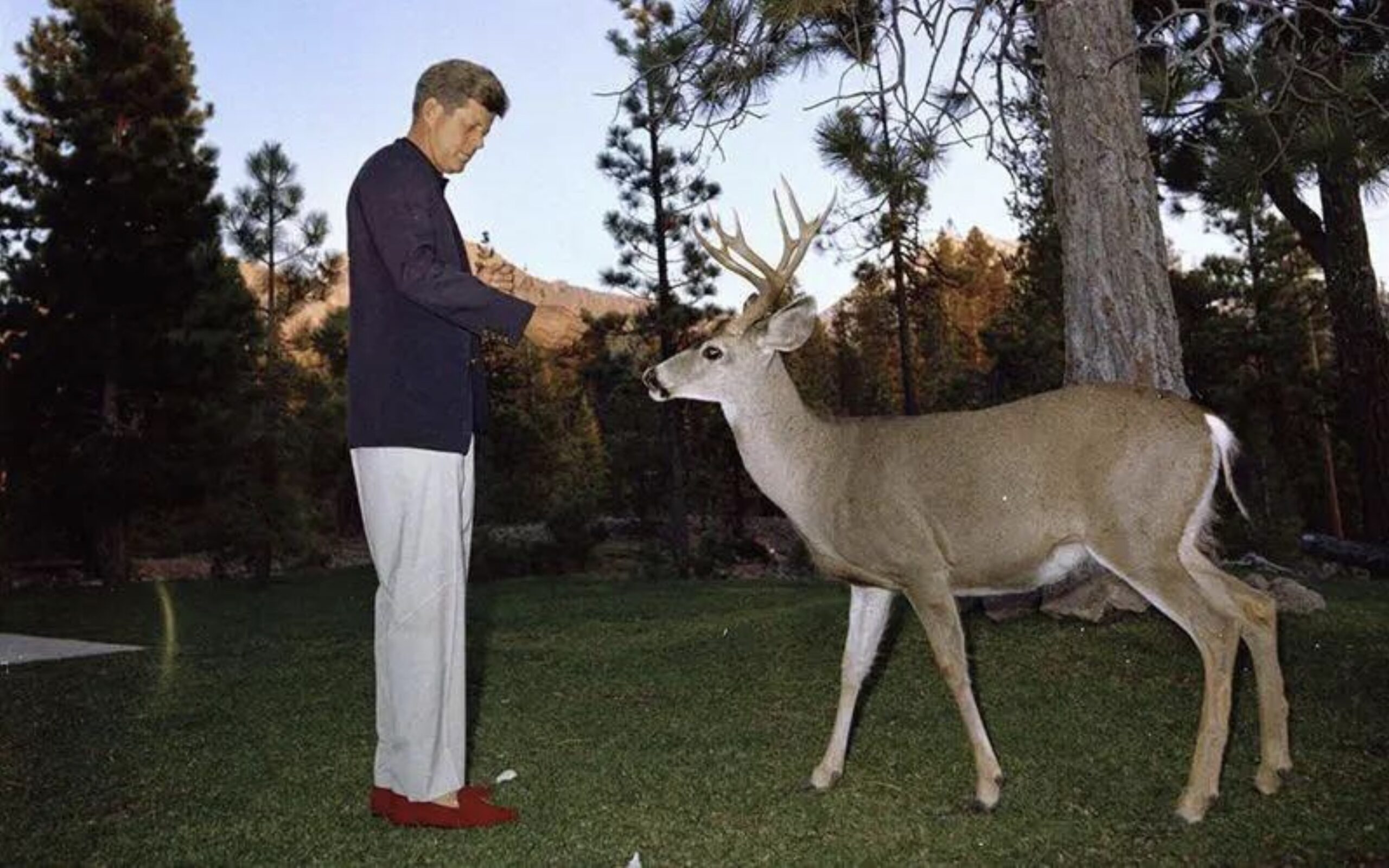 #7 Prezident John F. Kennedy kŕmil v pyžame a papučiach jeleňov chlebom