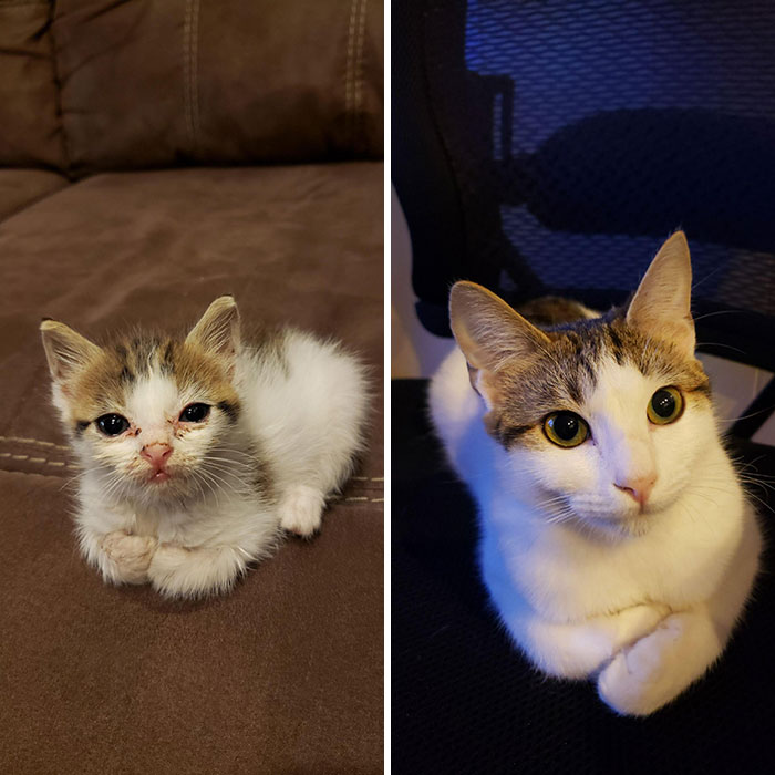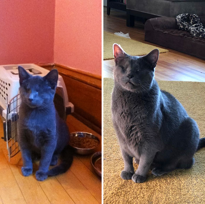 Ľudia ukázali fotky svojich mačiek predtým a po tom, ako ich adoptovali