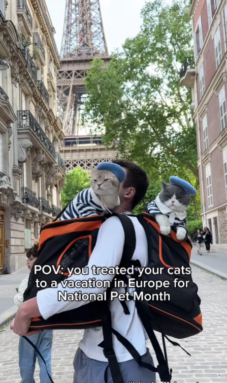Muž sa na TikToku pod prezývkou @louiseandtodd delí aj o svoj život s mačkami, dokonca sa ho ľudia pýtajú ako on a štyri mačky zvládli osemhodinový let do Paríža? On iba odpovedá, že všetky jeho mačky boli počas letu najvychovanejší v lietadle.
