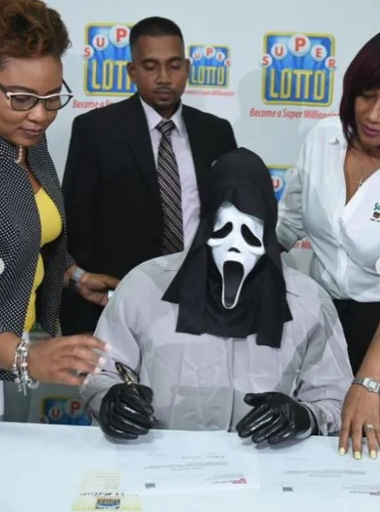 Niektorí výhercovia lotérie sa snažia ostať v anonymite. Tento muž to však práve posunul na nový level. Výherca Super Lotta na Jamajke si prevzal hlavnú výhru v maske z hororu „Vreskot“. Identifikoval sa iba ako A. Campbell a v maske prišiel do hotela Spanish Court v Kingstone.