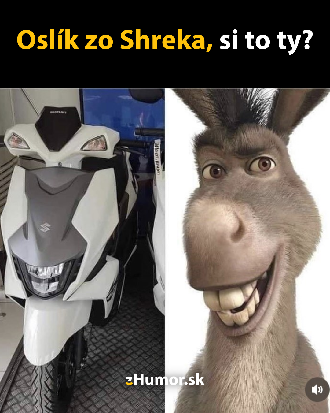 Kto by nepoznal vtipného oslíka z rozprávky Shrek? Rozprávková dvojica, ktorá sa potĺkala svetom, zachránila krásnu princeznú, ktorá je v skutočnosti tiež zlobriňa a nakoniec si vzala za muža zlobra Shreka. No a tento skúter sa nenápadne podobá na tohto oslíka. Čo si myslíš ty?