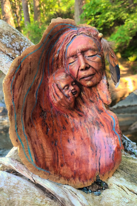 Umelkyňa vytvára diela z dreva. Pretvára ho v ľudské bytosti a vdychuje doň život