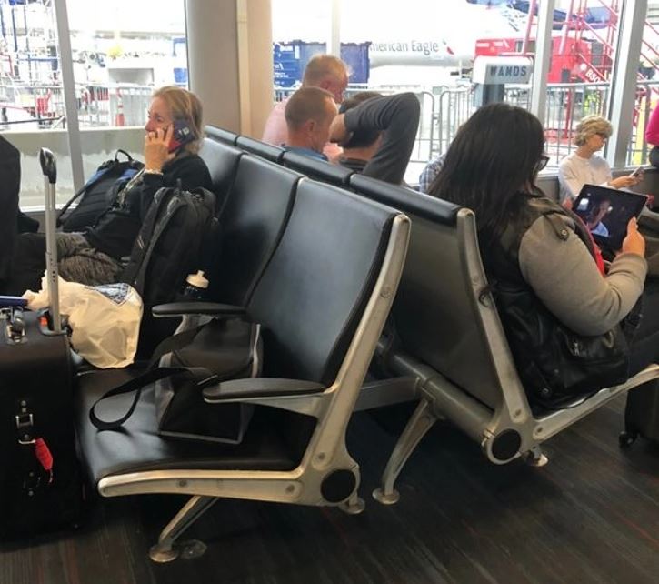#2 Terminál bol tak preplnený, že ľudia sedeli na podlahe, zatiaľ čo táto žena zabrala 3 miesta svojimi taškami